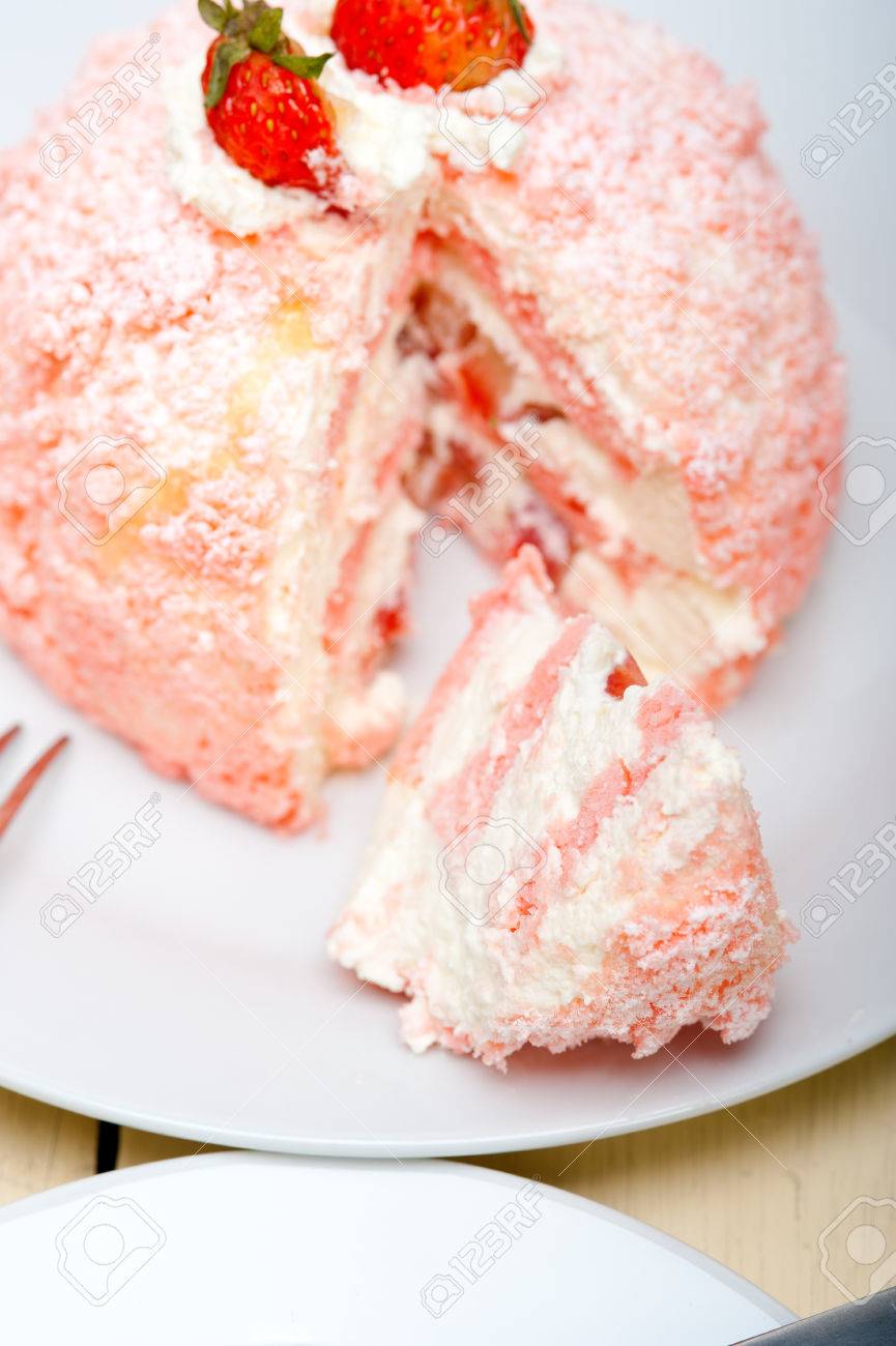 Fresh Pink Strawberry And Whipped Cream Dessert Macro Close Up